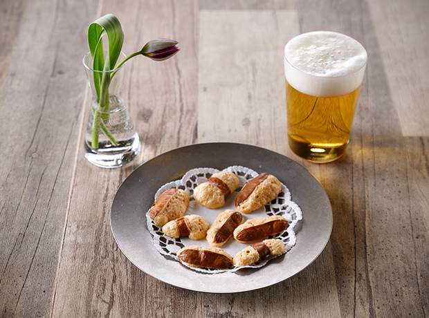 「なめらか スモークチーズ」をチップスに。燻製の香りと香ばしさが魅力。ビールと一緒に。
