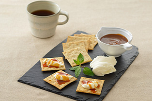 - とろりとしたカマンベールチーズとジャムで香り豊かに。紅茶の深い味わいを合わせて。バケットもつけて、おしゃれなアフタヌーンティーに♪