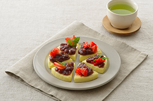 - あずきとチーズの甘じょっぱい組み合わせには、緑茶の渋みがおすすめ。6Pチーズの濃厚さに、いちごの酸味とミントの爽やかさがアクセント。