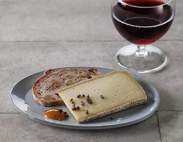 同郷であるサヴォワ地方の赤ワインと一緒に。くるみパンを添えて。