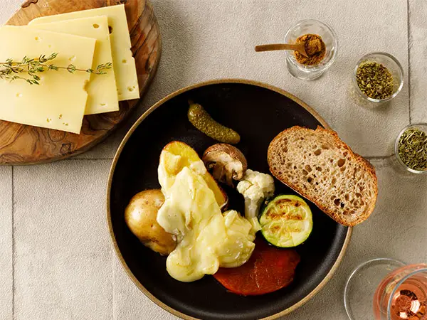 さらりと溶けて食材を包み込む、ラクレットならではの絶妙なとろけ具合が魅力。