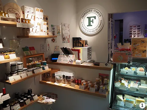 コンパクトな店内には、約70種類のチーズが並んでおり、そのセレクションは季節や定期的に開催しているフェアに合わせて変わります。フェルミエオリジナルの熟成チーズも取り扱っています。こちらのお店で最も人気のあるチーズは、フランスでも広く親しまれているハードタイプの「コンテ」です。価格的にも手に取りやすく、初めてチーズ専門店を訪れる方にもおすすめです。