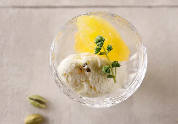 レアチーズケーキのような「ブリア・サヴァラン」に柑橘・ハーブで清涼感をプラス
