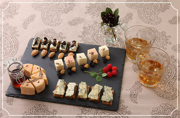 秋をイメージしたスイスと日本のチーズの盛り合わせ