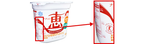 ナチュレ 恵 megumi フルーツヨーグルトの紙ラベルを分別しやすいように「はがしくち」という表示をしました。