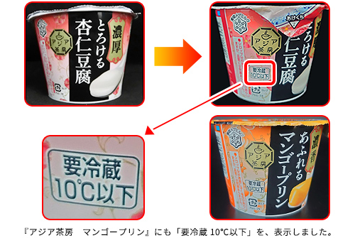 「おいしく召し上がっていただくために」という表現を、より直接的な「保存方法およびご注意」に変更すると共に、表示を白地に赤抜きの文字にし、より見やすく分かりやすくしました。