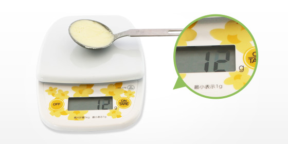 - ※この例は、大さじの重量を差し引いて表示しています。
