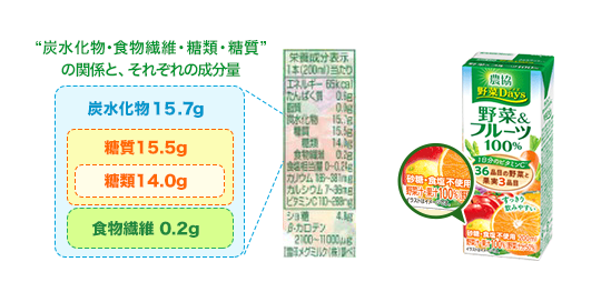 「農協 野菜Days」シリーズの栄養成分表示に「炭水化物」「糖質」「糖類」と書いてあるのは、なぜですか?
