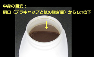 そのため、内容量よりも少し大きめな容器を使用し、容器の上の部分は余裕をもたせています。