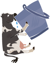 「牛のように飲み、馬のように食べる」のたとえの通り、一日に20リットルの乳を出す牛はそれに匹敵する水分を必要とします。実に100リットルもの水を飲みます。酪農家にとって牛に水を与えるのも重要な仕事。放牧地には必ず大きな水飲み場があります。