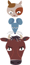 | 昔々、神様が森の動物たちを集めてこう言いました。「こんど十二支(じゅうにし)を作ることになった。ついては明日、私の家に来なさい。早いものから順に十二支にいれてあげよう。」これを聞いたねずみは牛さんに言いました。「牛くん、きみは歩くのが遅いから夜中のうちに出発しなきゃだめだよ。僕が道案内してあげる。」牛はねずみにせかされて、夜中のうちに神様のところを目指して出発しました。ねずみは牛の背中に乗りのんびり眠っていきました。やがて夜が明けるころ牛は神様の家に着きました。もちろん一番乗りでした。ところがあと一歩というところで、背中に乗っていたねずみが飛び降りて、門をくぐりぬけてしまいました。この結果、十二支は、子(ねずみ)・丑(うし)・寅(とら)・卯(うさぎ)・・・の順になりました。 ところで、神様が話をしている最中に居眠りをしていた猫は、隣にいたネズミに「いま神様はなんの話をしたの?」とたずねました。ネズミは「明後日、神様の家に来なさいと言っていた」とウソを教えました。十二支に入れてもらえなくなった猫は、それ以来ネズミを追いかけまわすようになったとさ・・・・よくできたおはなしです。 |