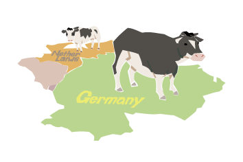 ホルスタイン種の原産地は、ドイツ北部のホルスタイン地方と言われていますが、品種改良されて乳牛として確立したのがオランダの北部、北海に面したフリースランド地方です。