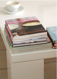 私の場合のコーヒーテーブルブックは、海外のインテリアやテキスタイルなどを紹介した洋書でしょうか。部屋の模様替えを考えているときは、何度となく好きな写真を眺めて、自分の思い描くイメージをふくらませるヒントにしています。季節の花やガーデニングの写真集なども、疲れているときは心がなごみます。そのときどき、気になるものを何冊か選んで、リビングの低いテーブルやチェストの上などに重ねていますが、その状態でもきれいに見えるように背表紙の向きや角を揃えたり、積み上げすぎないようにも気をつけています。