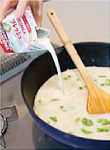 豆類はさやから出してすぐゆでるのがおいしさのコツ。 そら豆も同様です。大きなさやに対して、 取り出した豆はあっけないほど少ないですが これもふわふわのさやの中で大事に守られていた証。 そら豆の香りは豊かで、じゃがいもととてもよく合います。 なにより牛乳や生クリームとの相性がいいので 体に優しいミルク味のスープは そら豆の出回る間には何度も作りたくなります。