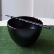年前、わが家は庭のリフォームで庭木を数本、残念ながら切ることになり、知り合いの輪島の塗師、赤木明登さんに相談しました。すると彼は、私の思いを理解してくれて「器にしてみましょう」といってくれました。それからときを経て、届いたのが写真のすてきな器です。高台の無いシャープな鉢の形は、和洋どちらにも使えます。色は一見したところ黒ですが、木地を「すおう」という上品なあかね色で染色した上に漆を重ねているため、ほんのり赤みがさして見えます。あとで赤木さんに伺うと、材料の庭木は割れや空洞、ねじれがたくさんあり、塗りものの木地向きではなかったとか。それをあきらめず、すべて繕いながら椀型にし、乾燥に従ってどんどん割れて開く箇所には、同じ材の別の部分から取ったくさびを打ち込むなどして仕上げてくれました。思い出のある庭木をこんなに美しい器に再生してくれた赤木さんに感謝の思いでいっぱいです。毎日の暮らしの中で大事にしながら使い込んでいこうと思います。