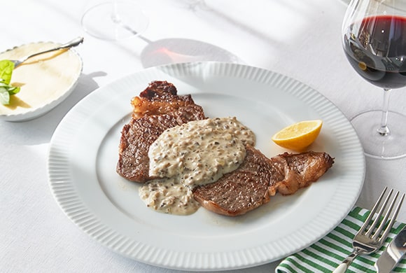 大きめのステーキと熱々のグラタンをクリスマスのごちそうに