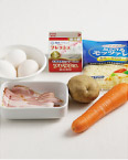 6(4)のにんじん、じゃがいも、(5)のベーコンに半量のチーズを混ぜる。