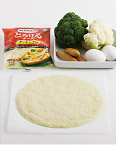 4 ピザシートをパイ皿にのせ、(2)、(3)の具をちらす。