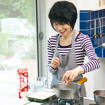今年の十五夜は9月15日。まだ暑さの残る中ですが、夜空を見上げて秋の気配を少しでも感じたいと思います。昔からお月見には出盛りのさといもを供える風習があって「いも名月」とも呼ばれています。そこで今月のミルクレシピは、まん丸な月に見立てたさといもコロッケとミルク白玉じるこです。どちらにも共通な丸める作業は、手のひらを使って丁寧にやってみると心がなごむ気がします。