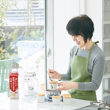 おいしくて食べやすい鶏ハムをよく手作りしています。しっとりやわらかく仕上げるには、皮を除いた鶏むね肉をヨーグルトと塩こうじで半日以上マリネし、湯の中でゆっくり4時間ほど。火が通ったら好みの厚さにスライスして野菜やチーズ、アボカドディップなどと一緒にサラダプレートにしたり、パンにはさんだり。小さなビュッフェみたいにセッティングして楽しんでいます。おやつのミルクサヴァランは、生地にラム酒入りのミルクソースをしみ込ませ、上にはチーズクリームをたっぷりのせました。
