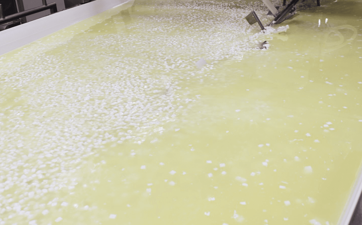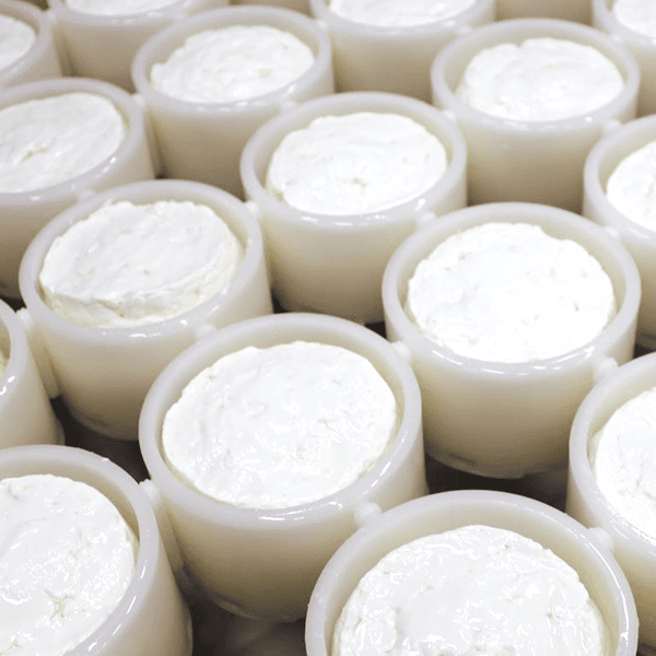 高温殺菌した生乳に乳酸菌・レンネット、白カビを独自の配合で加えていきます。