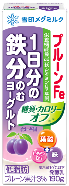 ※鉄分は汗のほか、尿、便、月経血などによって体外に排出されます。 鉄分が不足すると、酸素が体中に行き渡りにくくなり、 なんとなくブルーな症状が……。 プルーンFe 1日分の鉄分 のむヨーグルト プルーンFe 1日分の鉄分 のむヨーグルト 糖質・カロリーオフ® プルーンFe 1日分の鉄分 ヨーグルト プルーンFe 2本で1日分の鉄分 チーズ