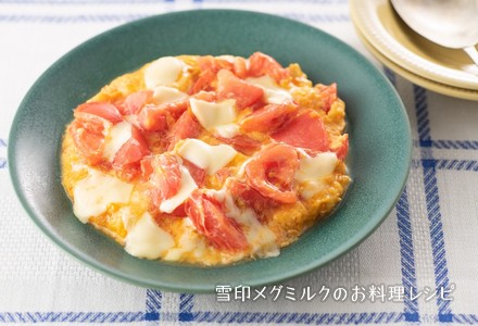 それはスキムミルクを水で溶かしてから卵と混ぜ合わせる事。そのまま振りかけると、混ぜてもダマになりやすく、卵となじみませんが、ポイントを押さえると 均一に混ざります。ミルクのほのかな甘みも感じられる一品になります。