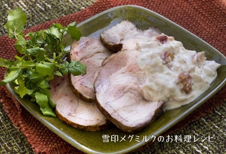 - 肉をスライスしてソースを添え、お好みでクレソンを添える。