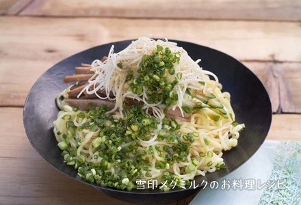 夏のランチに、ぜひおすすめ。細くさいた辛味タイプの「さけるチーズ」とねぎをたっぷりとのせた冷やし中華です。アクセントにピリリとした山椒の少々。ごま油は熱して、食べる直前にかけましょう。チーズの風味、山椒やねぎの香りがふわっと立ちあがってきて、食欲がますます刺激されます。