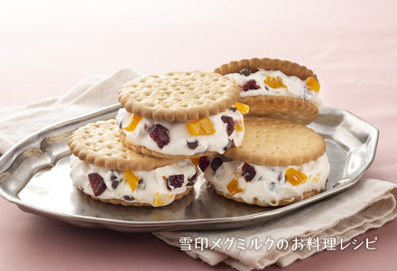 冷たく爽やかなヨーグルトとクッキーのサクサク感がおいしくマッチ。ヨーグルトに角が立つくらい泡立てたクリームを加えることでサンドしやすくなります。ドライフルーツはヨーグルトの水分で食感も軟かに。お好みチョイスで彩りも楽しみましょう。